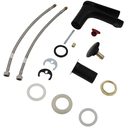 Die AquaSu Waschtischarmatur Orva mit Schaftventil Schwarz Tief kommt in einem schlichten, aber eleganten Design mit gradlinigen Formen. Seine klaren Linien und die Oberfläche in Schwarz verleihen ihm einen modernen Look, der für ein einzigartiges Design im Bad sorgt. Die Armatur kommt mit einem Schaftventil in Standardgröße 1 1/4 Zoll, welches für Waschtische ohne Überlauf geeignet ist. Ausgestattet ist sie außerdem mit einer Keramikkartusche, welche dank ihrer Keramikdichtscheiben besonders langlebig und dauerhaft leichtgängig ist. Die pflegeleichte Oberfläche schützt vor Verschleiß. Im Lieferumfang enthalten sind neben der Armatur noch flexible Anschlussschläuche und Befestigungsmaterial. Die Auswahl aller wasserführenden Materialien entspricht der deutschen Trinkwasserverordnung.