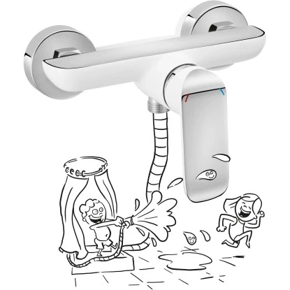 Die baliv Duscharmatur DU-5070 überzeugt dich mit ihrem modernen Design: Der obere Teil ist flach und kantig und bietet dir eine zusätzliche Ablagefläche für deine Duschutensilien. Der abgerundete untere Teil stellt dazu einen schönen Kontrast dar. Das Farbspiel aus Silber und Weiß hebt dieses besondere Design noch einmal hervor und macht aus der Badarmatur einen echten Hingucker für deine Wohlfühloase.
