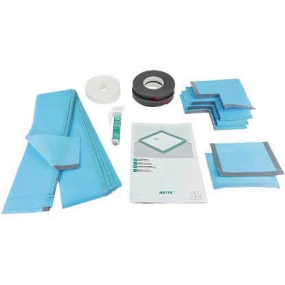Das Bette Dichtsystem für Duschwannen und Duschflächen bietet zuverlässigen Schutz vor Durchfeuchtungsschäden im Boden- und Wandbereich. Spezielle Dichtbänder, die in die Verbundabdichtung eingearbeitet werden, schützen die Gebäudehülle vor dem Eindringen von Feuchtigkeit, beispielsweise durch poröse Silikonfugen. Ein Set enthält alle nötigen Komponenten, inklusiver bereits vorgeformter Ecken.