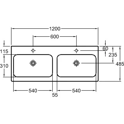 Es ist mit zwei Hahnlöchern, zwei runden Überläufen und mit zwei getrennten Becken ausgestattet. Dadurch bietet das Waschbecken besonderen Komfort und genügend Platz für die ganze Familie. In schlichtem Weiß lässt es sich mit Ihren Dekorationen, Handtüchern und Möbeln kombinieren, ohne dabei Langweilig zu wirken.
