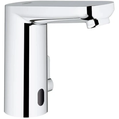Ein charakteristisches Designmerkmal der Grohe Waschbeckenarmatur Eurosmart Cosmopolitan E ist die Schlüssellochform des Auslaufs, die sich beim Temperaturregler wiederholt. Schlüssig ist auch der nahtlose Übergang zwischen Körper und Auslauf, der maximale Hygiene und einfache Reinigung gewährleistet. Effiziente Technologie hilft dabei, Wasser und Energie bedarfsgerecht zu nutzen.