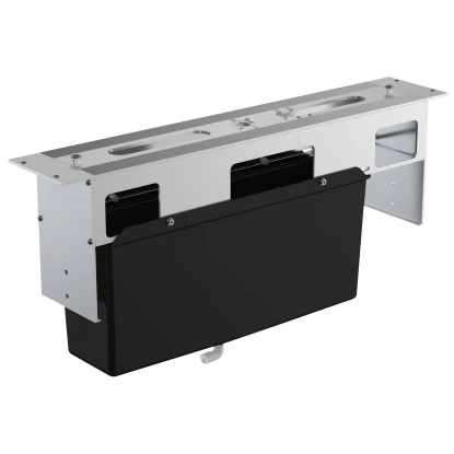 Die Wannenrandkombination eignet sich als Unterbau für die Fliesenbankmontage. Diese besteht aus einem Grundrahmen und einem Auffangsystem mit integriertem Ablauf für eindringendes Spritzwasser.