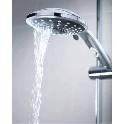 Die Handbrause Niagara ist eine Wellnessbrause mit belebendem Schwallstrahl für ein herrliches Frischeerlebnis wie unter einem Wasserfall. Die moderne Handbrause ist mit fünf Strahlarten sowie Wasserstopfunktion und Antikalk-Noppen ausgestattet. Die Umstellfunktion mit Wasserstop sorgt für Wasserersparnis beim Einseifen. So wird das Duschen zum Vergnügen.