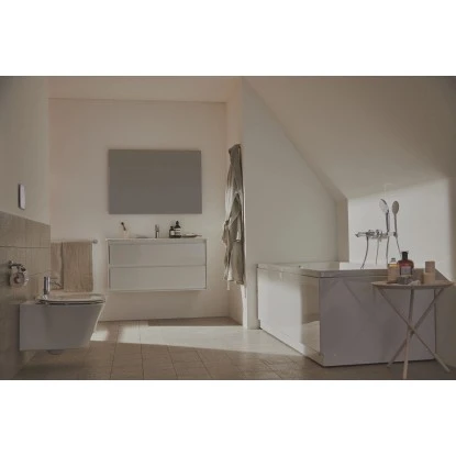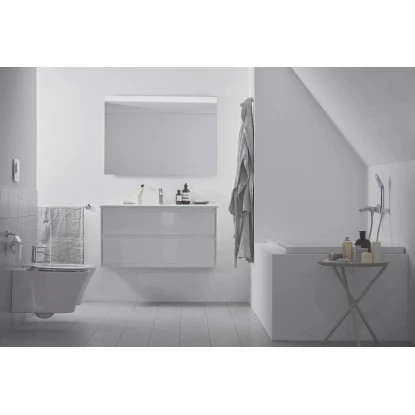 Das Ideal Standard Badethermostat Ceratherm T50 überzeugt durch wegweisende Technologie in Verbindung mit einem besonders schlanken Armaturenkörper. Die von Grund auf neu entwickelte FirmaFlow-Thermostatkartusche bietet kurze Reaktionszeiten und sichere Performance. Dank ihres kompakten Aufbaus verfügen alle CeraTherm T Thermostate über die Cool Body Technologie, die ein Aufheizen des Thermostatkörpers unterbindet. Die separat erhältliche Ablage zum Aufklipsen sorgt für zusätzlichen Stauraum. Besonders elegant sind auch die neuen CeraTherm T Duschsysteme aus dem Idealrain Programm. Das Badethermostat von Ideal Standard verfügt über einen Luftsprudler und Rückflussverhinderer. Durch das 2-Wege-Ventil kann zwischen Brause und Wanne umgeschaltet werden. Die RV Patrone auf der Warmwasserseite mit integriertem Überdruckventil dient zur Druckentlastung.