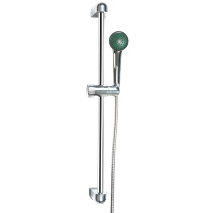 Die Sanotechnik Brausestangengarnitur AS787 in Chrom besteht aus einer verstellbaren Brausestange, einer Handbrause mit einer Funktion und einem 150 cm langen Brauseschlauch.