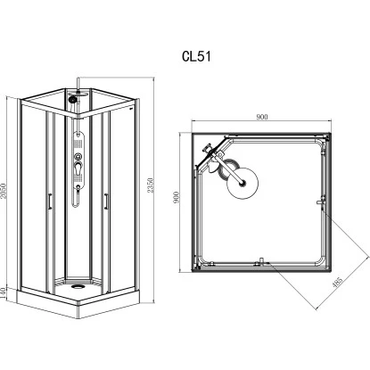Die Komplettdusche verfügt über das Schnellmontagesystem Quickline, das eine rasche Montage ganz ohne Silikon und Schrauben ermöglicht. Die Komplettdusche wird ohne Dach geliefert. Eine Schürze, das Fußgestell und ein Siphon sind im Lieferumfang enthalten.
