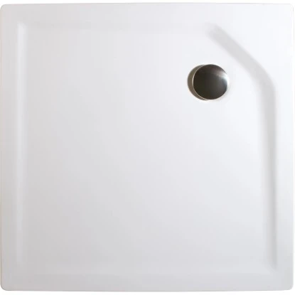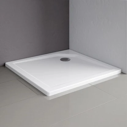 Die extraflache quadratische Duschwanne hat die Maße 80 cm x 80 cm und ist Alpinweiß.