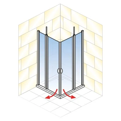 Der vierteilige Eckeinstieg der Serie Sunny von Schulte überzeugt mit vier großzügig geschnittenen Echtglasscheiben (ESG). Das nach DIN-Norm hergestellte Sicherheitsglas ist äußerst widerstandsstark gegenüber Belastungen durch Schläge, Stöße, Biegungen und Temperaturschwankungen, wodurch die Langlebigkeit der Duschkabine gewährleistet wird. Des Weiteren begeistern die beiden großflächigen Drehtüren auch optisch: Sie sind mit dominanten Aluminiumprofilen an den feststehenden Seitenteilen befestigt, sodass die Duschabtrennung im geöffneten Zustand einen komfortablen Einstieg gewährt.