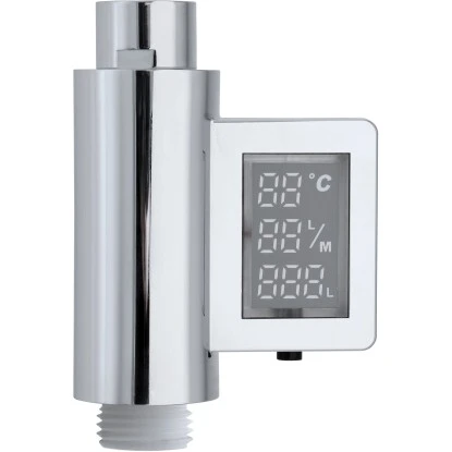 Der VerosanPro Wasserzähler mit LED-Anzeige misst den aktuellen Wasserverbrauch in l/min., den Gesamtverbrauch und die Wassertemperatur. Die LED-Anzeige leuchtet in drei verschiedenen Farben, bei einem Verbrauch bis zu 40 l leuchtet grünes Licht, bei 40 – 60 l gelbes Licht und über 60 l leuchtet das Licht rot.