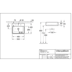 Villeroy & Boch Boch Aufsatzwaschbecken Memento 50 Cm Alpinweiß Mit Hahnloch Mit ÜL